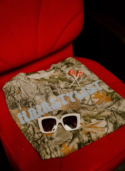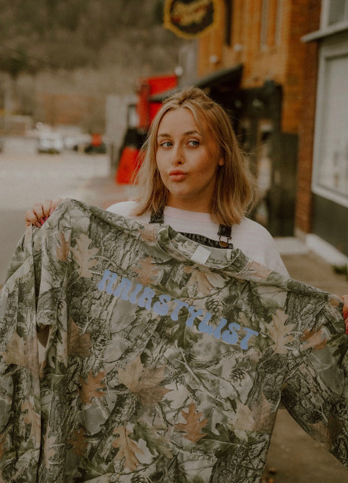 Celebrate your craft with this warm camo long sleeve featuring a bold hairstylist design. Crafted from soft cotton, it's perfect for stylists who want to showcase their passion both in and out of the salon. The relaxed fit and durable fabric make it ideal for everyday wear, while the eye-catching print adds personality to your wardrobe. A must-have for beauty professionals and enthusiasts alike.